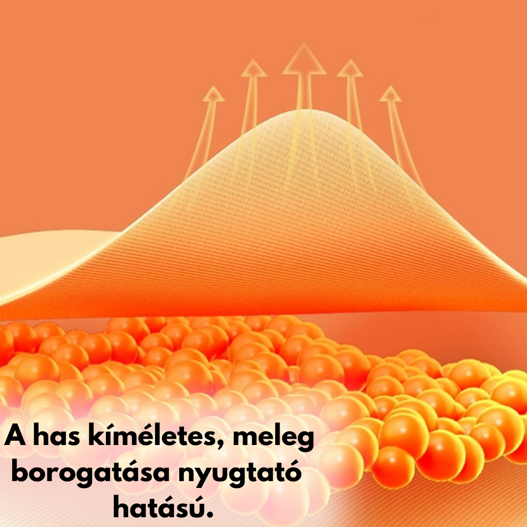 Mikróban melegíthető tenyérrész: A vörös babbal töltött kézbetét kivehető és 1–1,5 percig melegíthető (50–60 °C), így kellemes melegséget ad a babának.